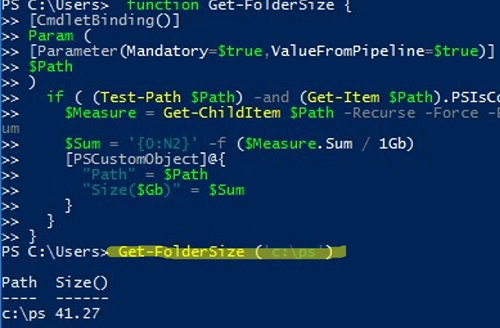 Get-FolderSize ('C:\PS')