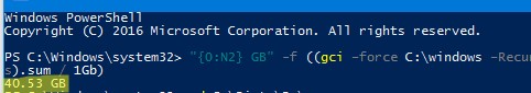 So the size of C:\Windows on my local drive is about 40 GB (script ignores NTFS compression).