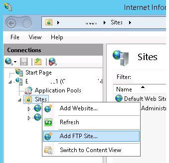 Create a new FTP site (Sites -> Add FTP Site).