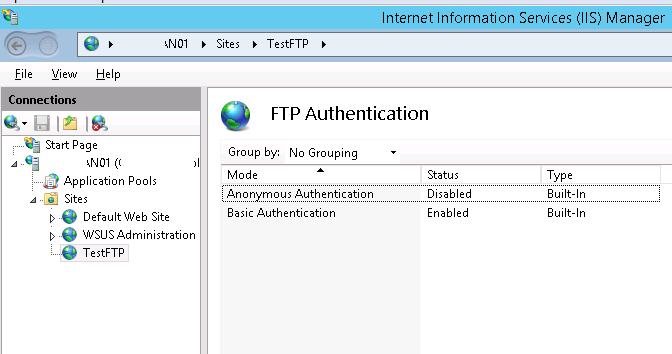 Select a new FTP site and disable the Anonymous Authentication in the FTP Authentication section. Basic Authentication must be enabled.