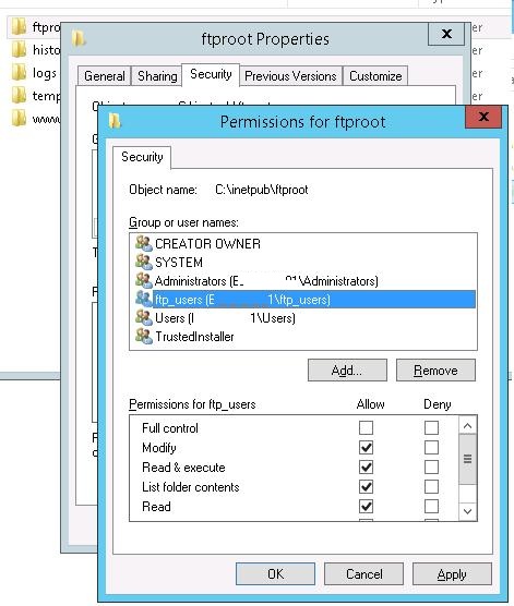 Assign the Read&Write permissions on the directory C:\inetpub\ftproot for the ftp_users group.