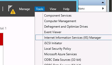 Start the Server Manager and open the IIS management console (Internet Information Service Manager).