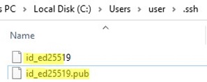 id_ed25519– private key (if you generated an RSA key, the file will be namedid_rsa)id_ed25519.pub– public key (a similar RSA key is calledid_rsa.pub