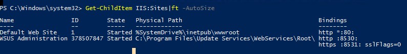 Get-ChildItem IIS:Sites|ft -AutoSize