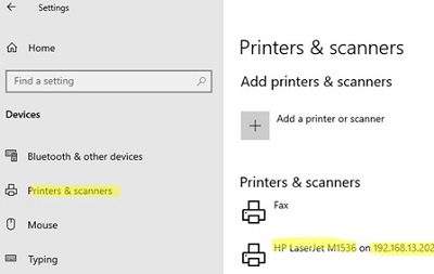 - Go to Settings -> Bluetooth and Devices -> Printers and scanners (or use the Settings URI command: