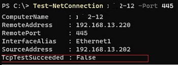 - Make sure that the remote computer allows incoming connections to shared network folders using the SMB protocol (TCP port 445). You can check the availability of port 445 on a remote computer using the Test-NetConnection command: