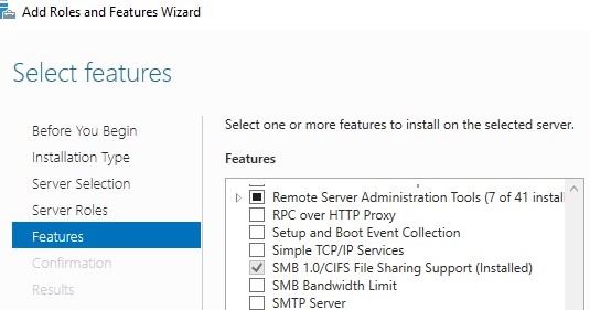 In Windows 10 and Windows Server 2016, the SMBv1 protocol is split into two separate components – SMB client and SMB server, which can be enabled/disabled independently.
