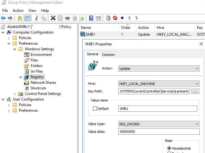 Disabling SMBv1 Client and Server via Group Policy
