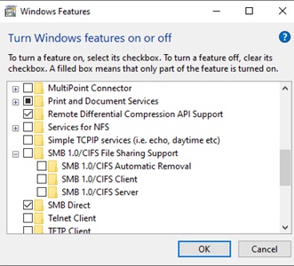 In Windows 10, you can also manage SMB 1 features from the Control Panel (optionalfeatures.exe). Expand the SMB 1.0 /CIFS File Sharing Support option. As you can see, 3 SMBv1 components are also available here: