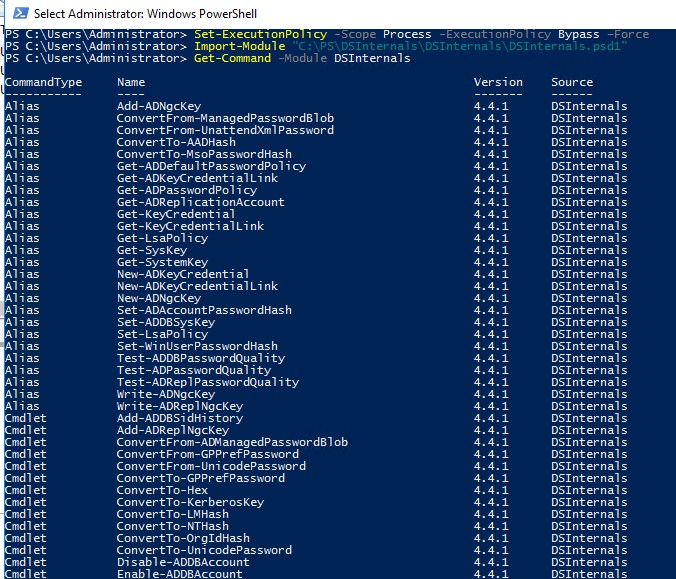 Import-Module C:\distr\PS\DSInternals\DSInternals.psd1
