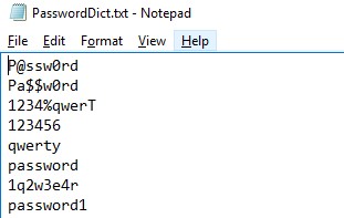 Next, you need to create a password dictionary. It will be a simple text file with a list of commonly used, weak, and other bad passwords. You can download a password dictionary file from the Internet or create yourself. The DSInternal module allows you to compare the hashes of your users’ passwords in Active Directory with the hashes of words from this file. Save the passwords to a text file PasswordDict.txt.