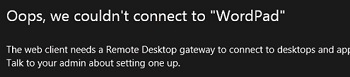 The web client needs a Remote Desktop Gateway to connect to desktops and apps.