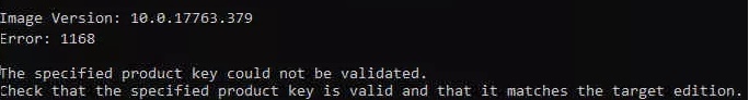 Error 1168 The specified product key could not be validated. Check that the specified product key is valid and that it matches the target edition.