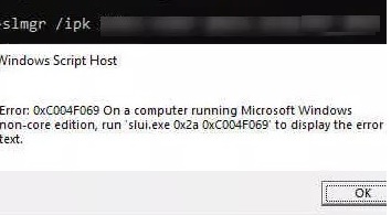 Error: 0xC004F069. On a computer running Microsoft Windows non-core edition, run ‘slui.exe 0xC004F069’ to display the error text.