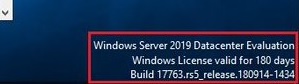 When using the Evaluation version of Windows Server, the desktop displays the current build and the time until the end of the grace period (Windows License valid for 180 days).
