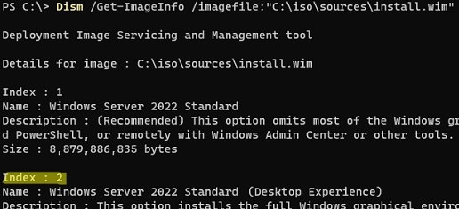 In this example, I going to inject drivers to a Windows Server 2022 Standard (Desktop Experience) image with Index:2.