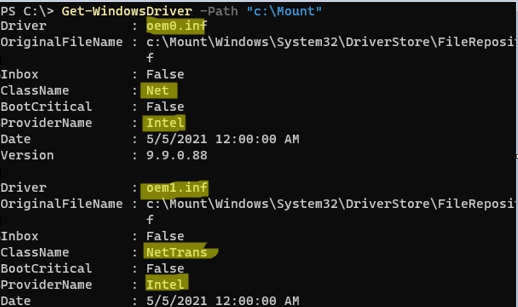 Get-WindowsDriver -Path "c:\Mount"