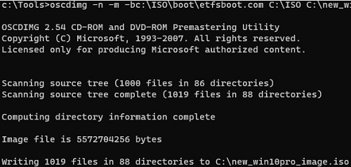 .\oscdimg -n -d -m -bC:\WinWork\Original\iso\boot\etfsboot.com C:\WinWork\Original\iso\ C:\WinWork\new_win10pro_image.iso