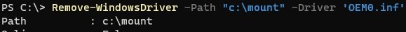 Remove-WindowsDriver -Path "c:\offline" -Driver "OEM0.inf"