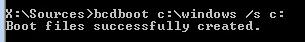 bcdboot c:\windows /s c: