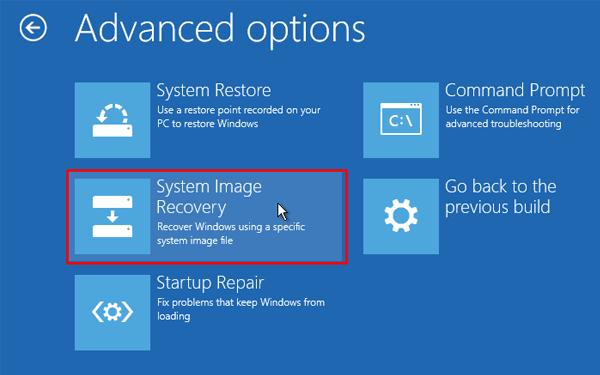 After that, go to Troubleshoot -> Advanced Options -> System Image Recovery.