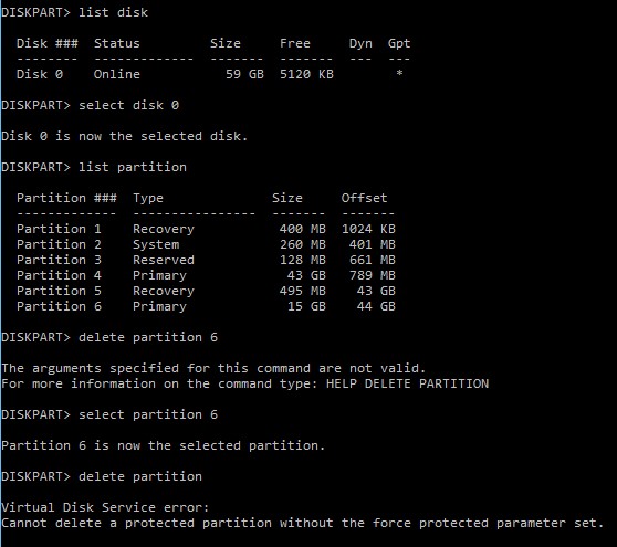 Diskpart cannot delete this partition. List detailed information about the selected partition and its attributes: