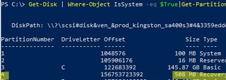 Get-Disk | Where-Object IsSystem -eq $True|Get-Partition