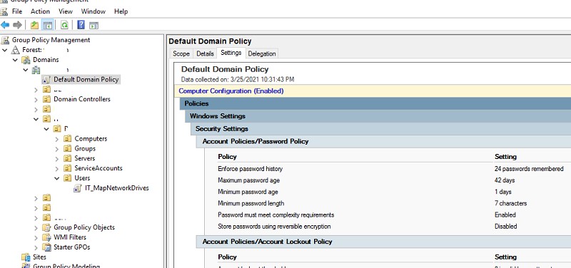 By default, to set common requirements for user passwords in the AD domain the Group Policy (GPO) settings are used. The password policy of the domain user accounts is configured in the Default Domain Policy. This policy is linked to the root of the domain and must be applied to a domain controller with the PDC emulator role.