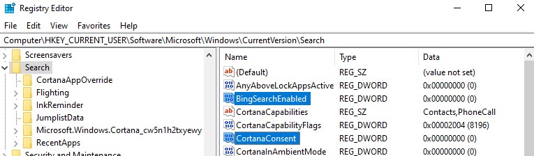 REG ADD HKCU\Software\Microsoft\Windows\CurrentVersion\Search /v BackgroundAppGlobalToggle /t REG_DWORD /d 1 /f