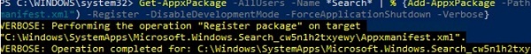 If that doesn’t fix your search issue, you need to completely re-install Microsoft.Windows.Search universal app (Microsoft.Windows.Search_cw5n1h2txyewy).