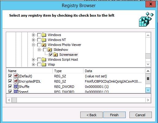 Now you need to configure your screensaver on a reference computer so that it took the images for the slide show from C:\Screen. The settings of the corresponding registry keys on this computer will be distributed to all PCs using Group Policy.