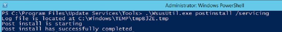 “C:\Program Files\Update Services\Tools\wsusutil.exe" postinstall /servicing - Check if .NET Framework 4.5 -> HTTP Activation is installed