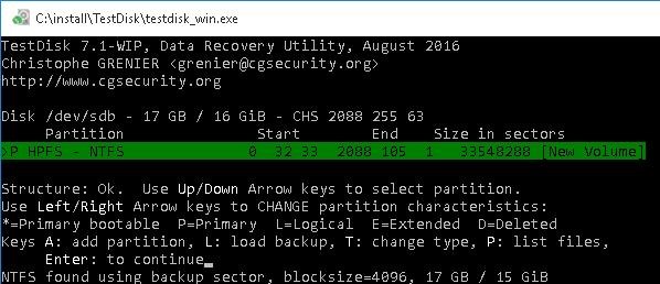 - TestDisk will display the list of the partitions it found. Using P key, you can display the list of files in a partition (Q lets you quit the view mode). If the partition has the P label (the partition is highlighted in green), the partition is recoverable. If there is the D label, it will be deleted. To change the label, use arrow keys (right/left) on your keyboard.