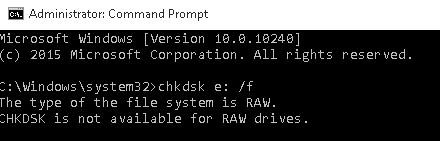 The utility returned that CHKDSK can not be executed for RAW-formatted drives.