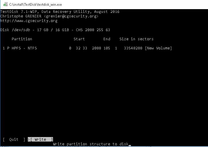 After you selected all the partitions you want to recover, press Enter and then click Write (you have to be attentive here in order not to overwrite the partition table with the things you don’t need). If you have to run a deeper analysis of the drive, select Deep Search.