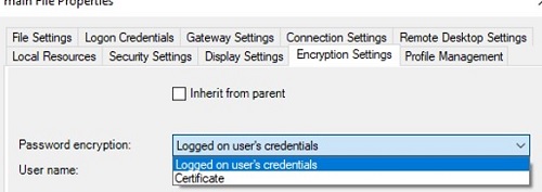 You can save your RDP credentials to connect to the servers in this group. In the Group Properties, go to the Logon Credentials tab and specify your credentials. All servers in this group inherit the group settings. To change any server option different from the specified group settings, uncheck the “Inherit from parent” and set the personal settings.