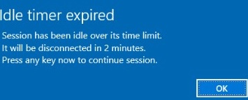 Idle timer expired Session has been idle over its time limit. It will be disconnected in 2 minutes. Press any key to continue the session.