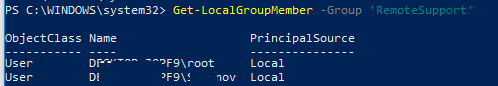 Get-LocalGroupMember -Group 'RemoteSupport'