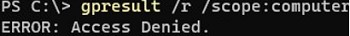 gpresult /r /scope:computerERROR: Access Denied.