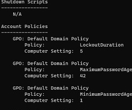 For example, the screenshot shows the domain password policy settings that are applied to the computer.