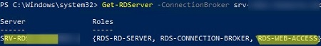 Get-RDServer -ConnectionBroker rdcb1.woshub.com| where {$_.roles -eq "RDS-WEB-ACCESS"}
