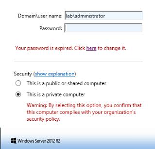 Now, when trying to connect to the RD Web Access server with the expired password, the user will be redirected to password.aspx web-page and offered to change his password.