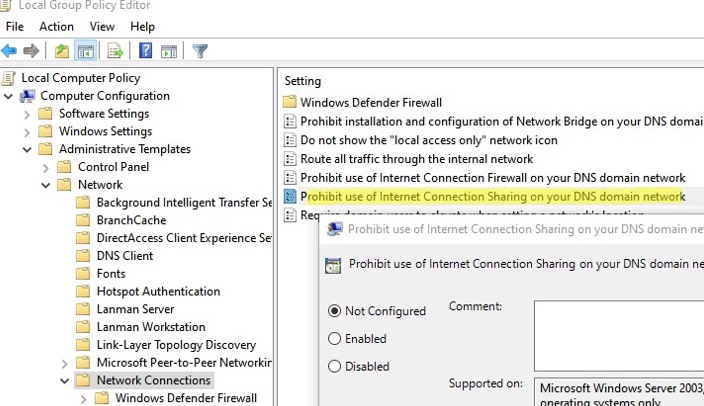 services.mscsnap-in or with the Get-Service PowerShell cmdlet:Get-Service SharedAccess; - Run the Network Adapter Troubleshooter tool (Network Adapter Troubleshooter: Troubleshoot -> Network Adapter -> Run Troubleshooter). The Network Troubleshooter tool will check the current network adapter settings and attempt to try to fix problems automatically;