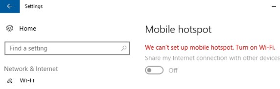We can’t set up mobile hotspot. Turn on Wi-Fi.