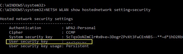 Netsh wlan show hostednetwork setting=security