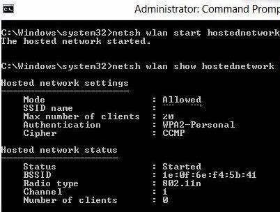 netsh wlan start hostednetwork