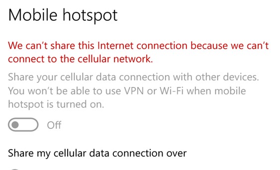 We can’t share this Internet connection because we can’t connect to the cellular network