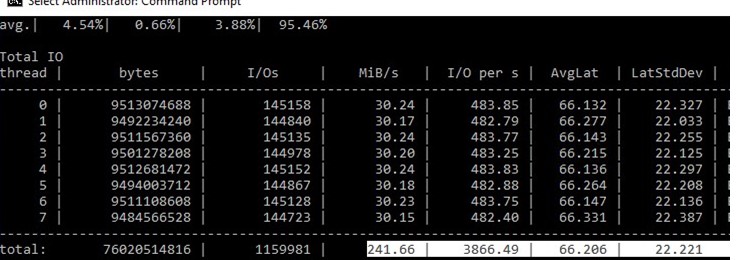 Having tested several disks or storage LUNs using diskspd, you can compare them or select an array with the desired performance for your tasks.