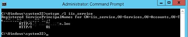 The next step includes the registration of Service Principal Name (SPN) entries for the name of the website, which will be accessed by the users. If the IIS website has to be available only by the name of the server, on which it is located (http://server-name or http://server-name.adatum.loc), you don’t need to create additional SPN entries (SPN entries already exist in the server account in AD). If the website address differs from the host name or if you are building a webfarm with load balancing, you will have to connect additional SPN entries to a server or user account.