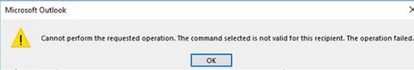Cannot perform the requested operation. The command selected is not valid for this recipient. The operation failed.